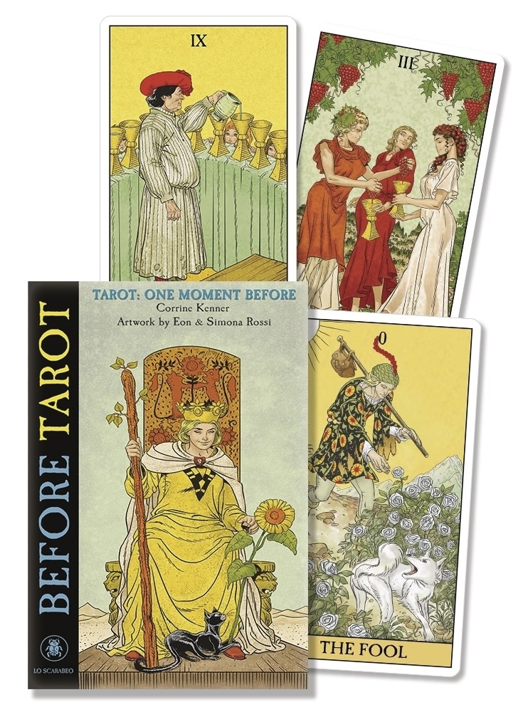 Following the tremendous success of the New Vision Tarot and the After Tarot, the Before Tarot Kit shows tarot readers and collectors the scenes that take place immediately before the images rendered in the Rider-Waite-Smith tarot. Each of the Arcana opens a new window into our understanding of the cards, adding a time dimension to what we see and what it means.