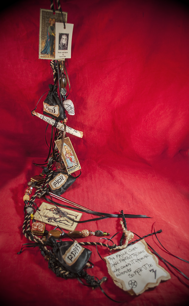 Thos Magical Spell Cord was Handcrafted by Official Salem Witch Laurie Cabot! Covered in Magical Symbols, Talismans and Spell Bottles this Cord Will Keep It¥s Owner Safe From Their Enemies.