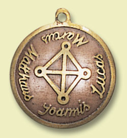 This is a faithfully reproduced copy of an amulet from a Knight's magickal belt housed in the Warsaw museum. This powerful charm should be worn to win a lover's heart. Approximate size: 1Ó in diameter. Made of brass and copper. Each pendant comes in a nic