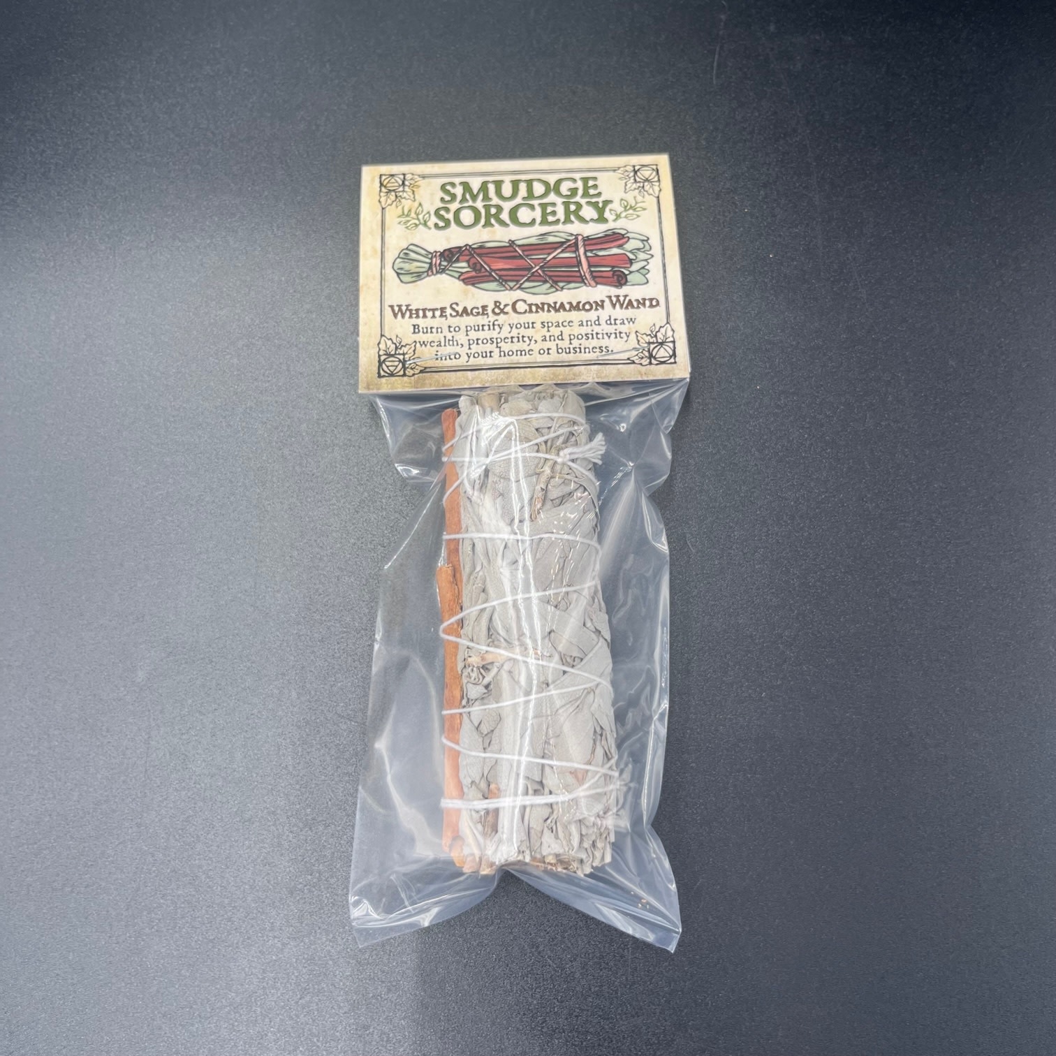 White sage purifies and cinnamon brings prosperity. Burn to purify your space and draw wealth, prosperity, and positivity into your home or business.